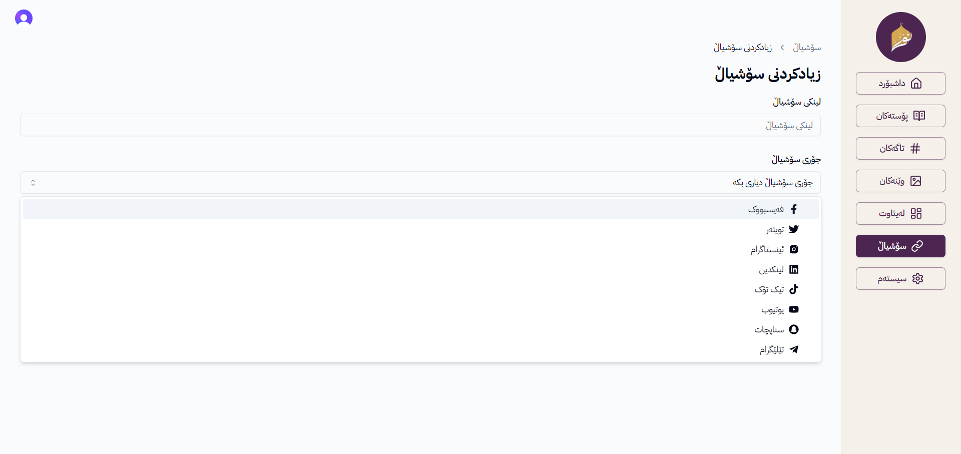 Add Social Link Page